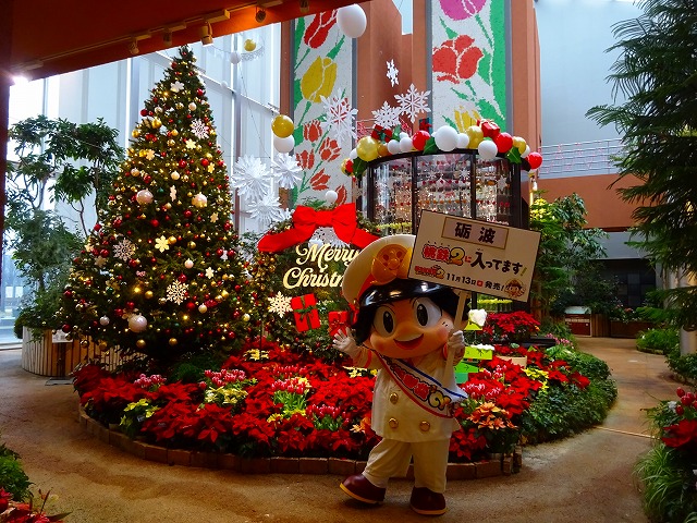 今話題のゲーム「桃太郎電鉄2」~あなたの町もきっとある~の桃太郎君がチューリップ四季彩館に来てくれたよ♪ お花を見ている後ろ姿もかわいい! 夏野市長とツーショットで撮影!! 砺波駅追加記念!のキャンペーンで来てくれたよ!