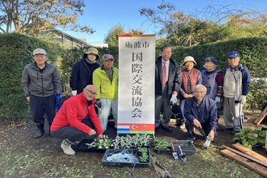 11/12 砺波市国際交流協会「チューリップ公園中央エリア 未来に広がる「私たちの夢花壇」にて植込み作業。チューリップの球根とそれを彩るワスレナグサ・ビオラ・シロタエギクの植込み。春のとなみチューリップフェアには花々が綺...