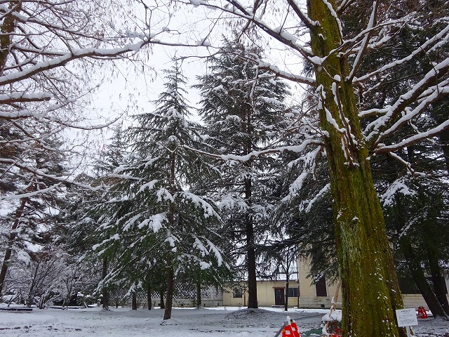 四季彩館前のカツラ並木 四季彩館から公園に続くユリノキ並木 ひょうたん池そばの桜並木 中嶋家の竹や杉とサルスベリ、ケヤキの並木 郷土資料館横のヒマラヤスギ 雪に負けずにスイセンの芽がチクチク元気!! アメリカフウのとげと...