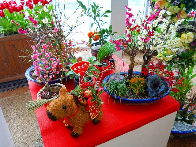 プリムラやハボタンなど早春から楽しめる植物の寄せ植えや、縁起物植物など新春にふさわしい植物を紹介するよ♪ 紅梅、白梅、しだれ梅も満開だよ♪ ゆっくり見に来てね~