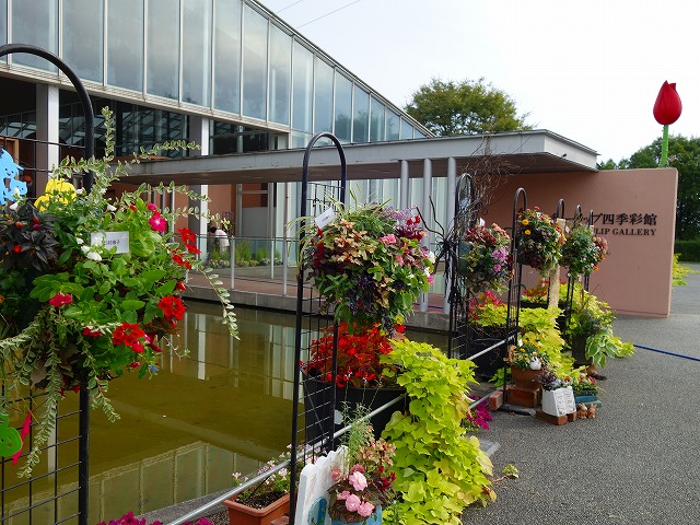 10月5日(日)にみなさんに設置してもらった作品がずらりと並んだよ!!チューリップ四季彩館の北側駐車場の横だよ! 42名の皆さんが応募してくれたよ!! 10月6日(月)に四季彩館教室の講師であり、日本ハンギングバスケット...