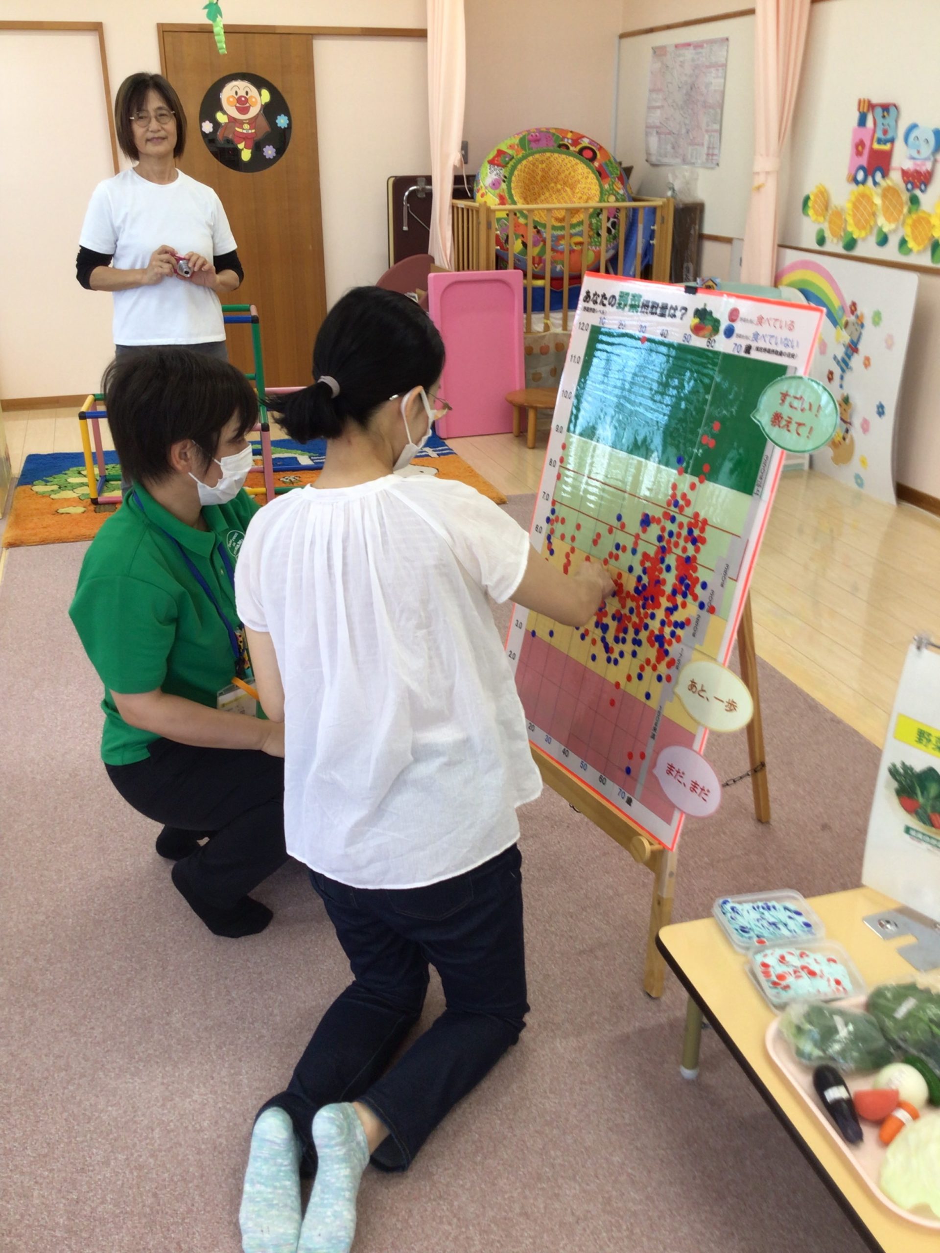 出町子育て支援センターにてベジチェック(野菜摂取量測定会)を行いました🥦 お子さんも一緒にベジチェック!結果はどうだったかな~? 野菜を意識して食べている方が多く、結果もみなさんよかったです🍅 1日に必要な野菜の量は35...
