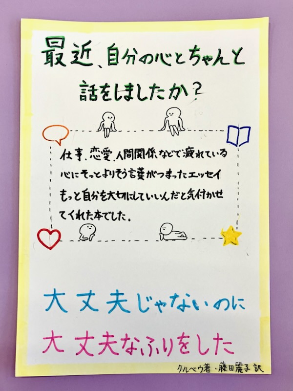 広報部では、「新しい本と出合うきっかけになればいいな」という願いを込めて、POPを作成しています。