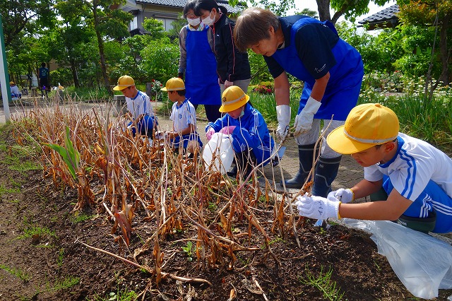 今日の掘り取り場所はエレガガーデン近くのフラワーロード!みんなは高道体育館Pから移動したね!