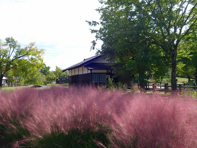 水車苑に咲くピンクミューリー!!がとってもかわいいよ!ススキの仲間なんだって!!