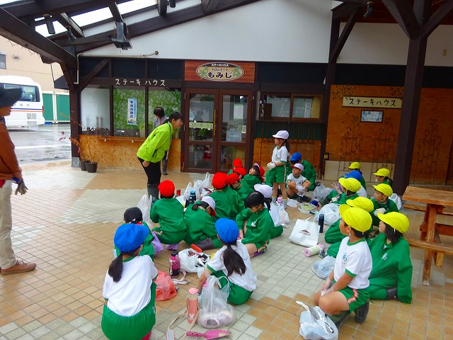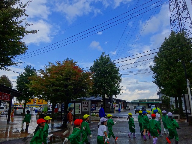お日様が出ていたのに雨が降ってきたので、みんなはしばらく雨やどり!