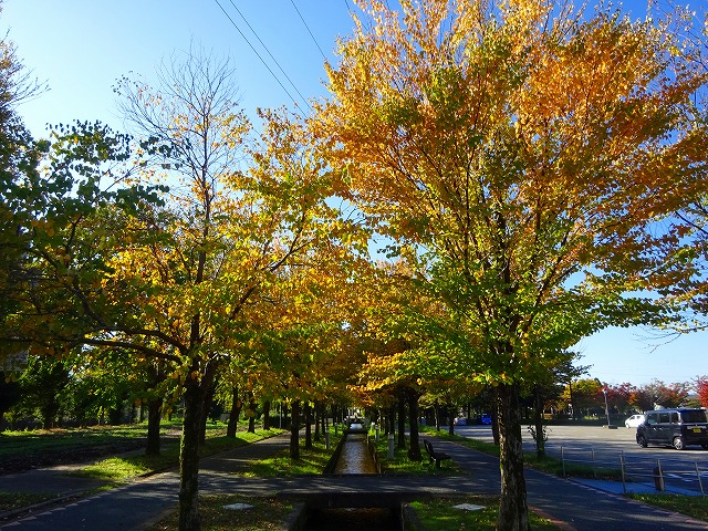 四季彩館前の桂並木は黄色くなったよ!とても甘ーい香りがするよ!