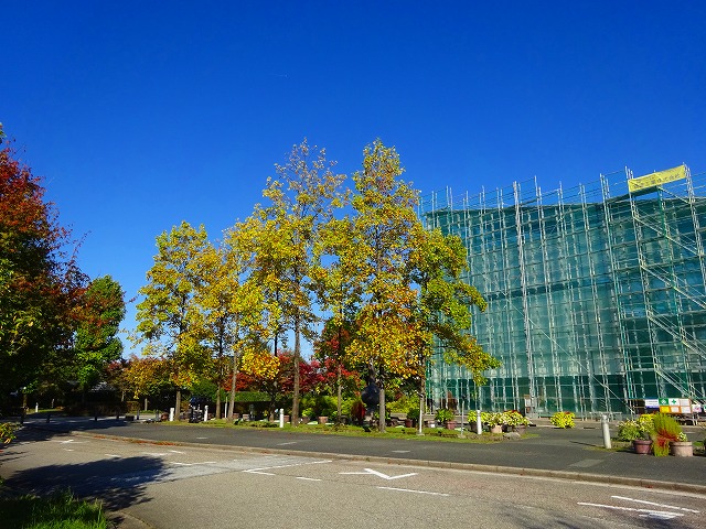 ユリノキも黄色くなったよ♪四季彩館の高い高い屋根の修理中だけど開館しているよ!