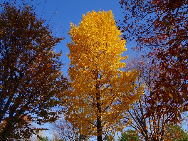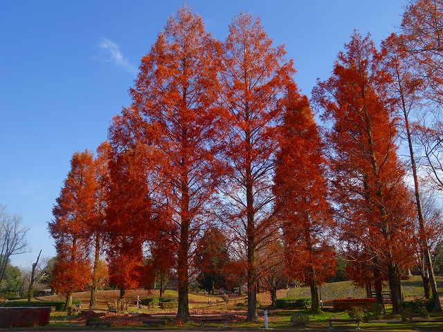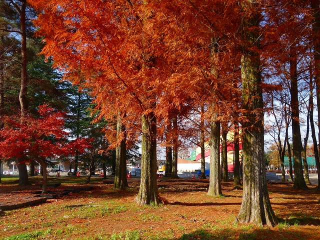 林床花壇はメタセコイアの落ち葉でオレンジ色!