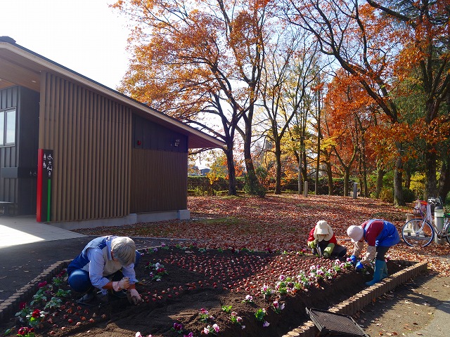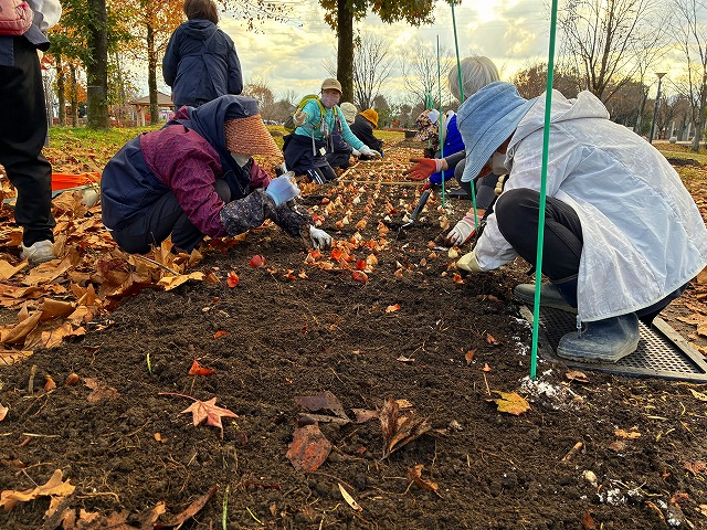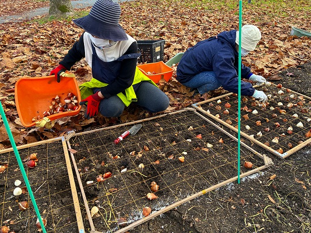 12月1日(月)はILOVE花壇とオランダ風花壇のチューリップ植え込み作業をお願いしました。
