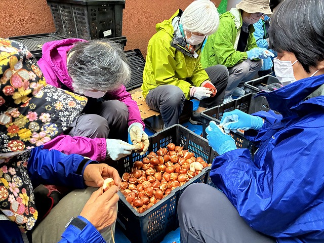 11月21日(金)は、チューリップの球根の皮むき作業をお願いしました。