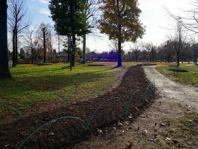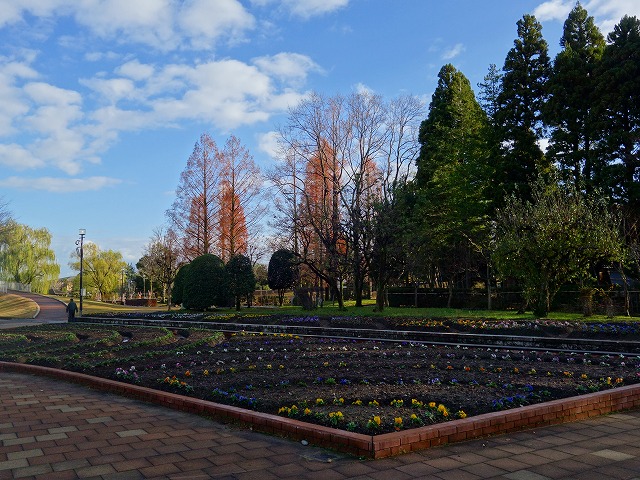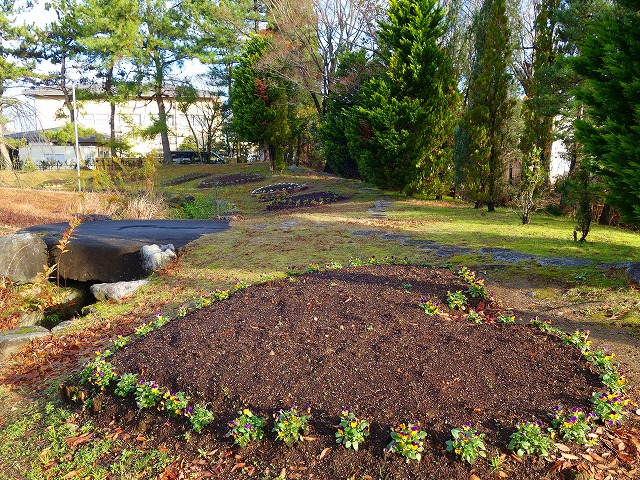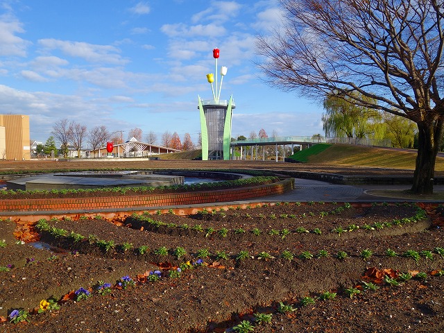 チューリップ広場の花壇はパンジーとワスレナグサとチューリップのコントラストが楽しみだね!