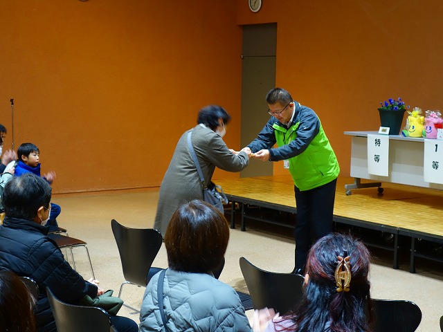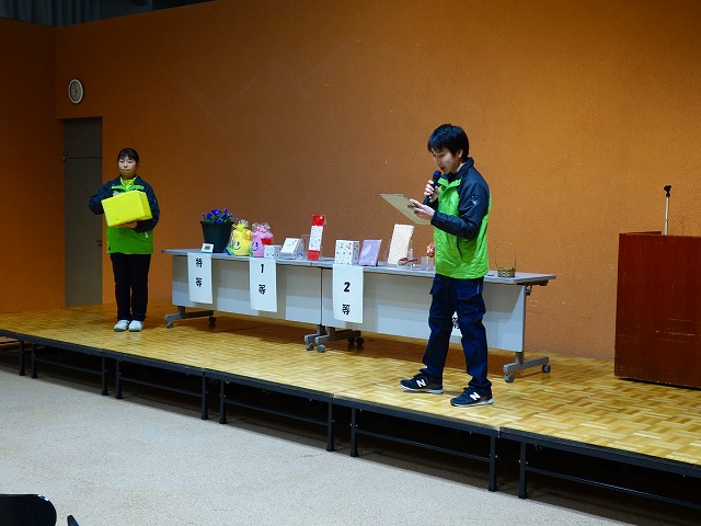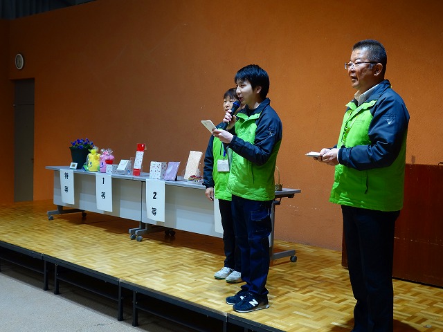 次は「お楽しみ抽選会」!特賞から3等まであるよ!賞品は15種類35人が当選だよ!