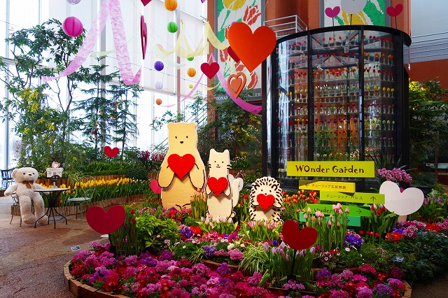 2025年1月30日(金)~3月25日(火) 「早春の庭」 促成栽培のチューリップとプリムラ、ガーベラなどの花々を展示したよ!ハートの装飾でバレンタインムードいっぱいだったよ♪