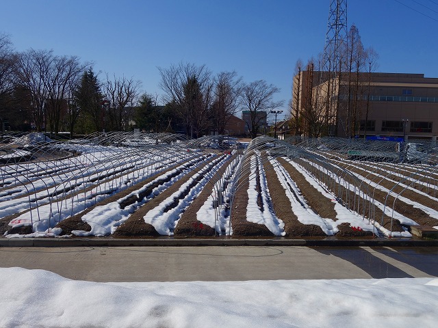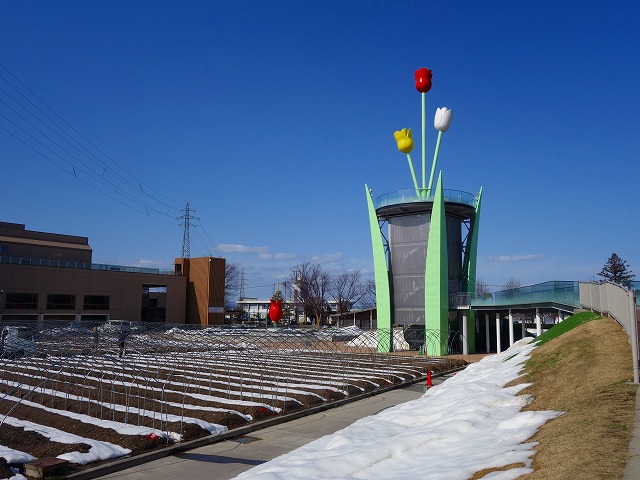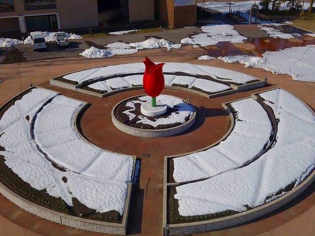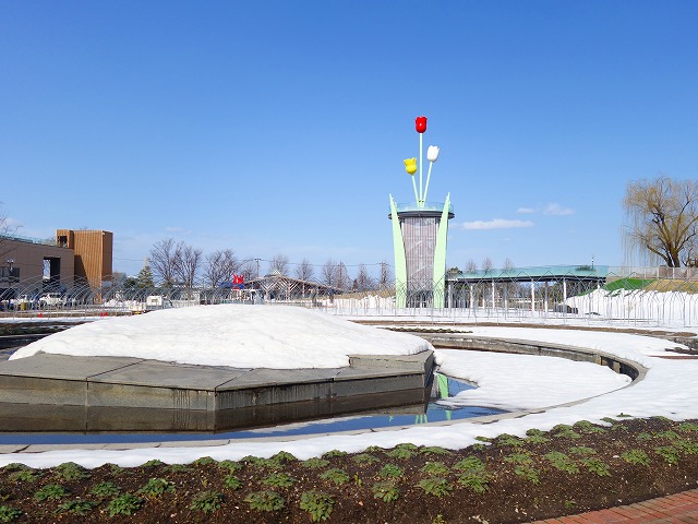 チューリップ四季彩館前はもうすっかり雪がなくなってるよ!