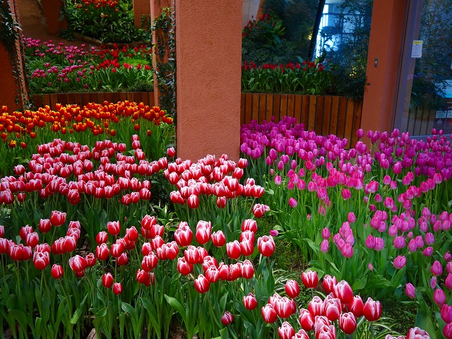 パレットガーデンでは、促成栽培のチューリップがとても元気!