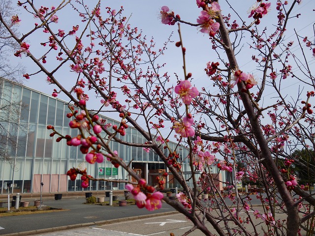 四季彩館前の紅梅も!