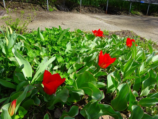 四季彩館前には、原種のチューリップが咲いているよ!