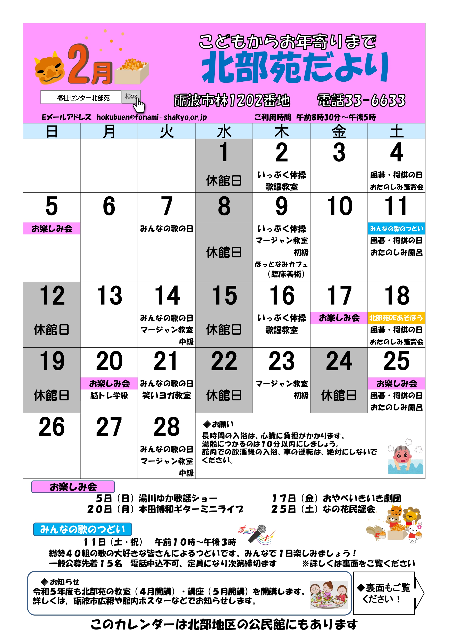 【お知らせ】福祉センター2月の行事予定