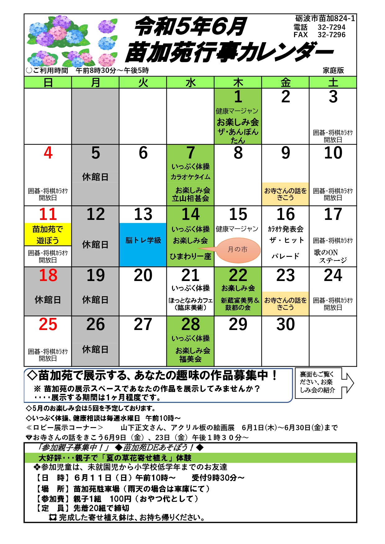 ゆーりっぷの部屋 【お知らせ】福祉センター6月の行事予定 2023年05月30日 11:11 行事開催案内 苗加苑、北部苑、麦秋苑、庄東センターの6月の行事予定をお知らせします。 詳細は、各センターのホームページをご確認ください。 苗加苑のHP 北部苑のHP 麦秋苑のHP 庄東センターのHP ツイート 前の記事次の記事