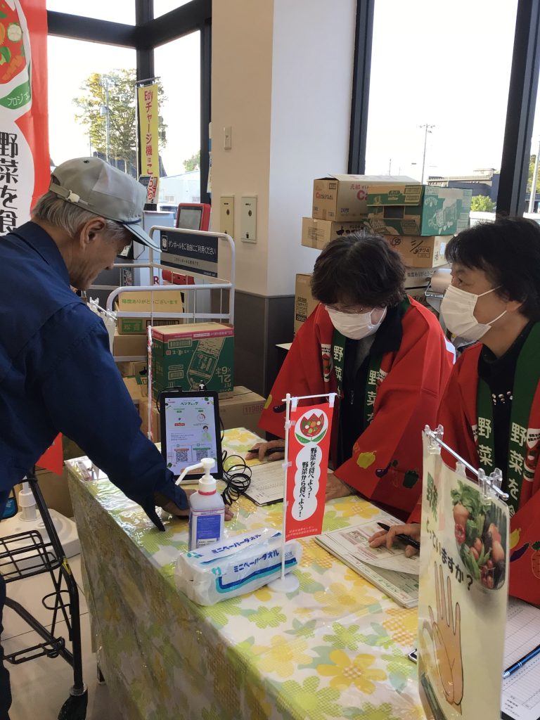 10月30日(木)に大坂屋ショップ砺波店で推定野菜摂取量測定会(ベジチェック)を行いました。