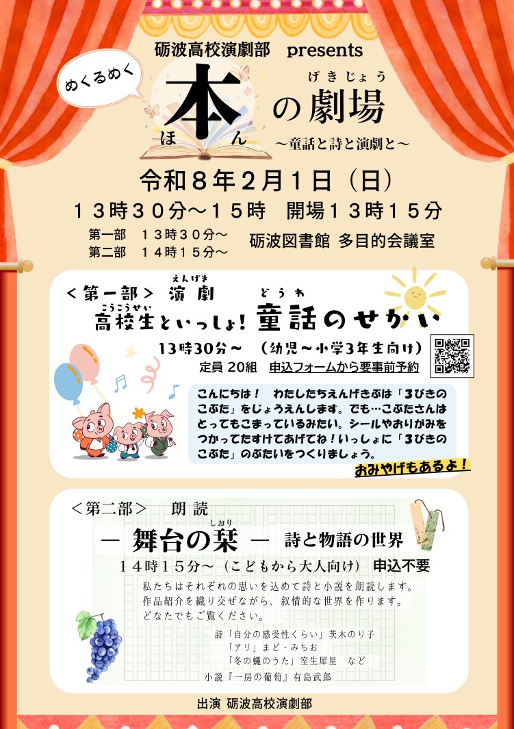 【イベント】2/1(日)砺波高校演劇部 presents「めくるめく本の劇場~童話と詩と演劇と~」@砺波図書館