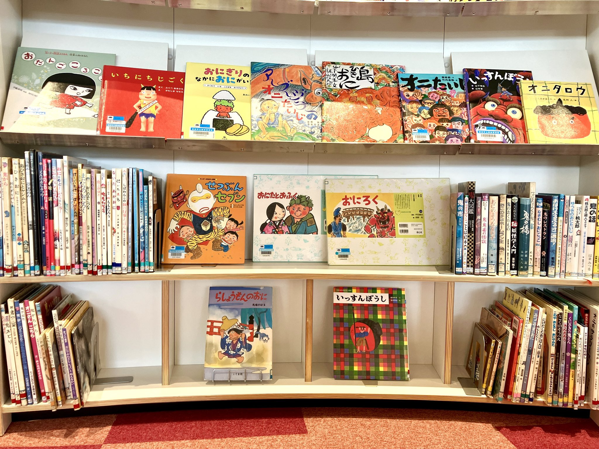 ラ・ラ・ラ・ライブラリー 砺波市立図書館 【企画展示】「鬼の絵本」 @砺波図書館 2026年01月09日 16:13 企画展示・おすすめ図書 児童向けの新しい企画テーマは「鬼の絵本」です。 もうすぐ節分ですね。鬼が登場する絵本を集めて展示しています。こわい鬼、ちょっと情けない鬼、昔話の鬼、ちょっと現代風の鬼…いろいろな鬼に出会ってみてください。 ツイート 前の記事次の記事