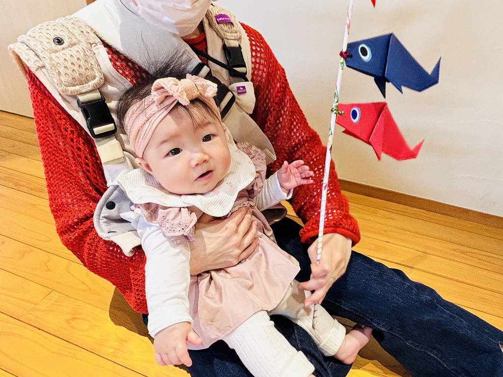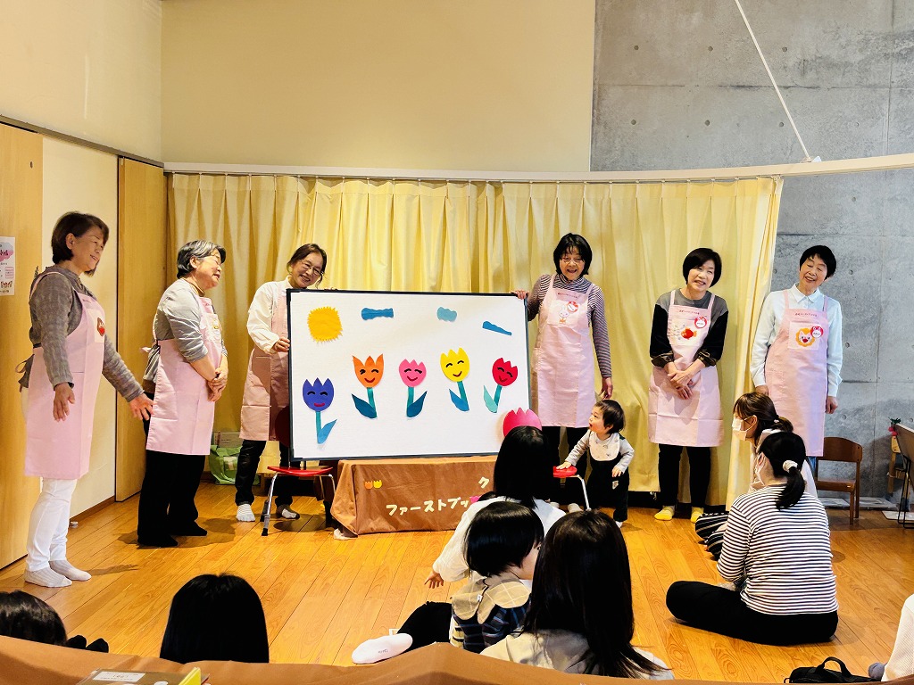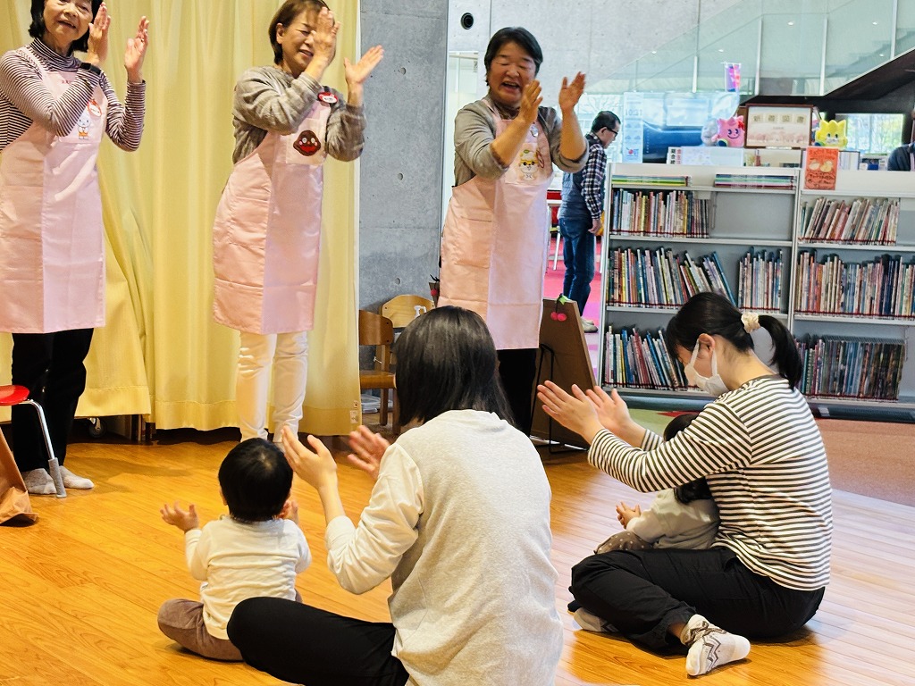 まずは手あそび。赤ちゃんも声を出して笑っています。