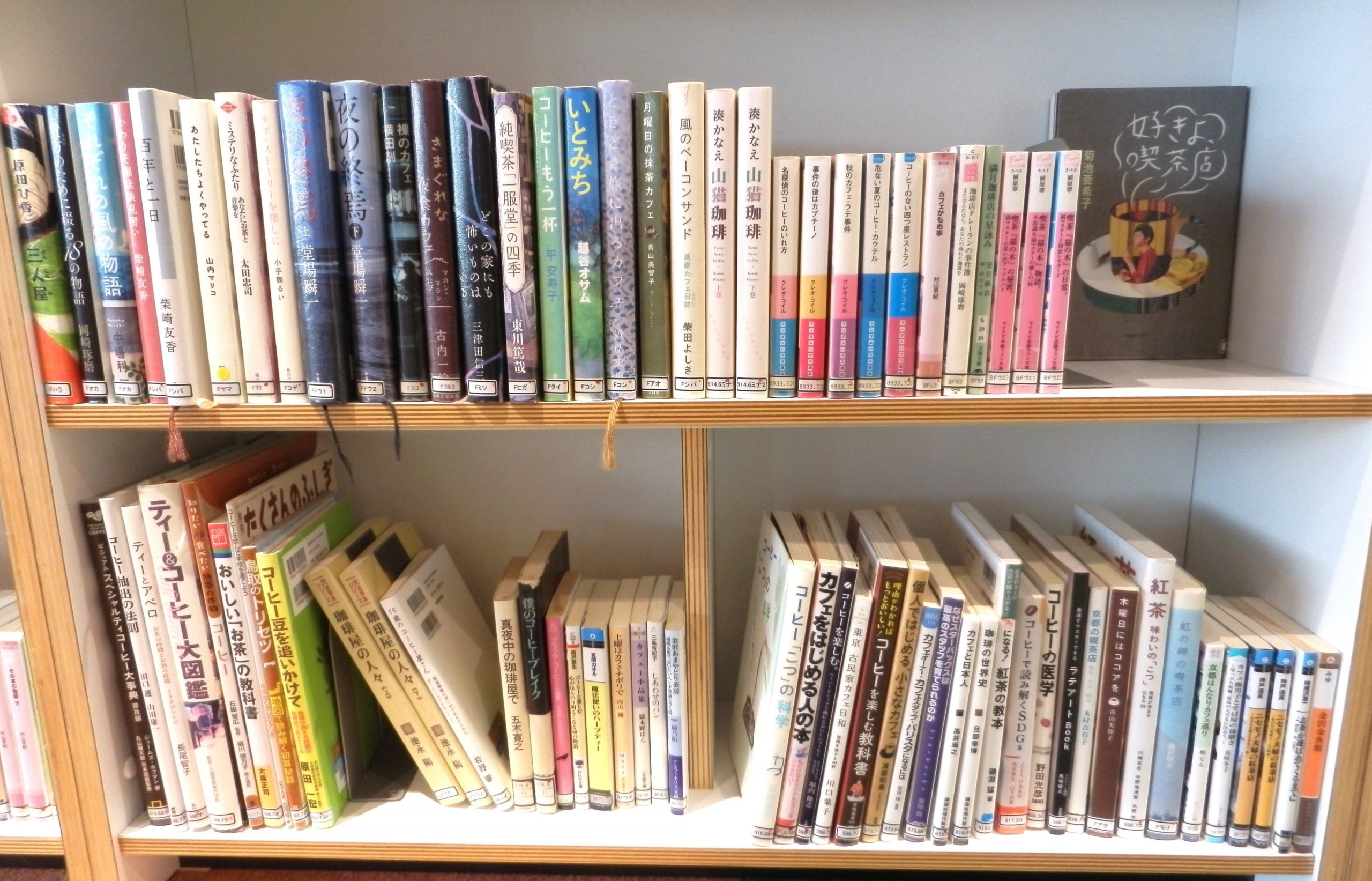 コーヒーに関する本や、カフェが舞台の小説を展示しています。