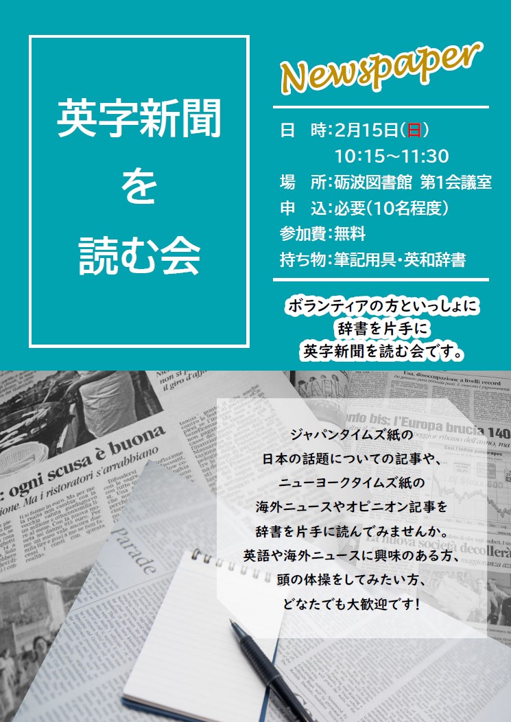 【イベント】2/15(日)「英字新聞を読む会」を開催します