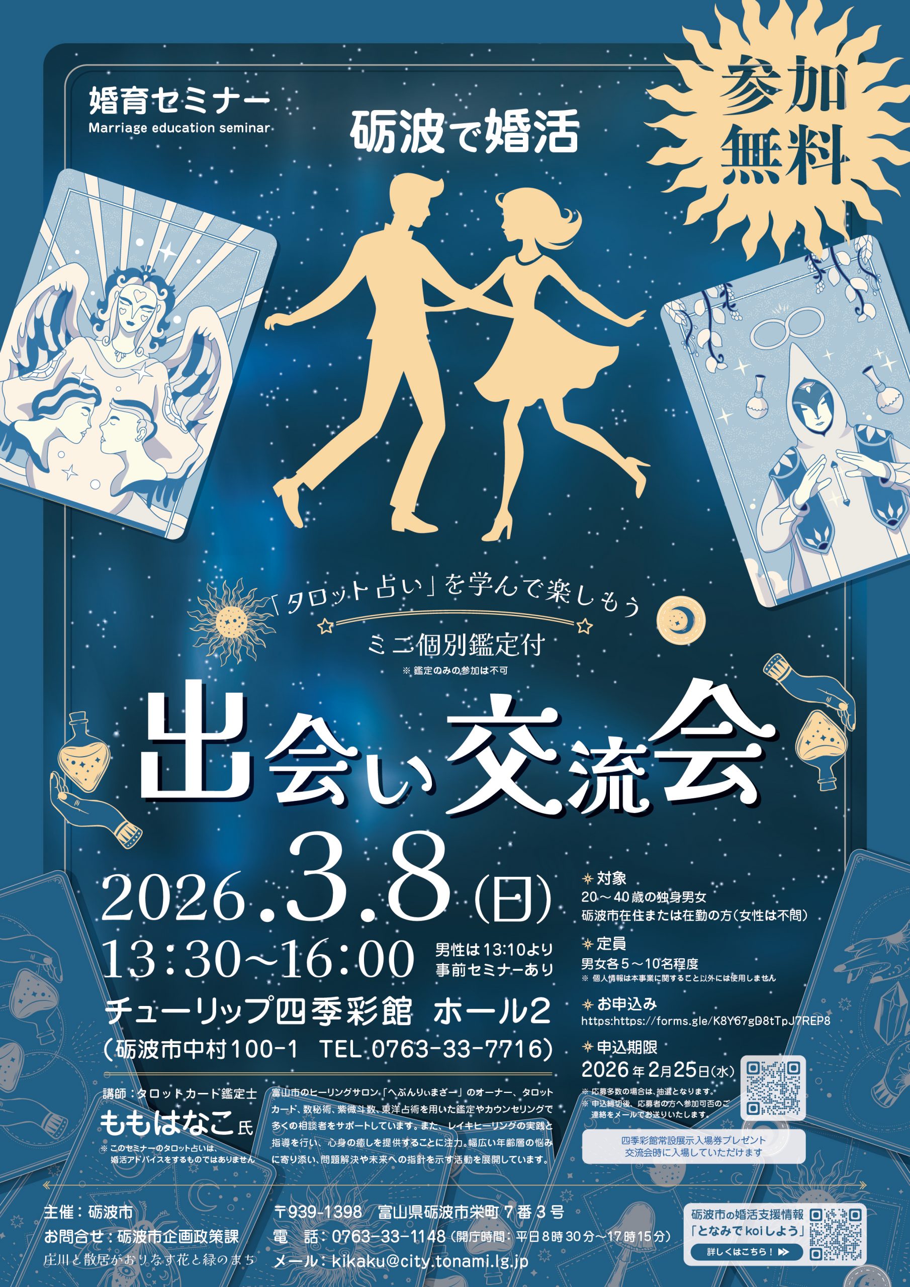 婚育セミナー「タロットカード鑑定」&「出会い交流会」参加者募集