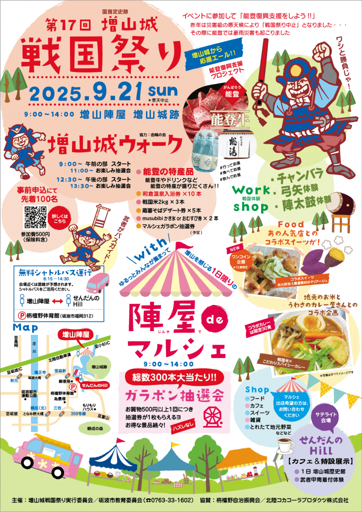 今年で第17回を迎える増山城戦国祭り、今年は増山陣屋で地元の食材を使ったマルシェや体験コーナーなどたくさんの催しが行われました。