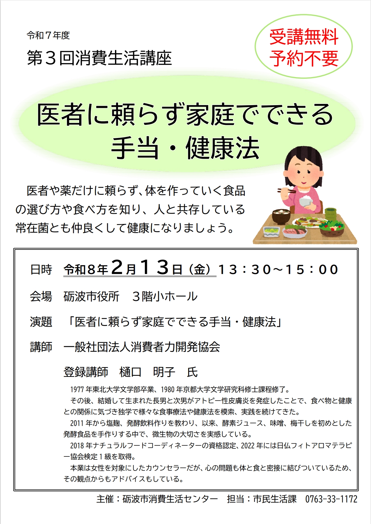 ●演 題 「医者に頼らず家庭でできる手当・健康法」
