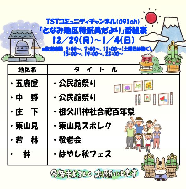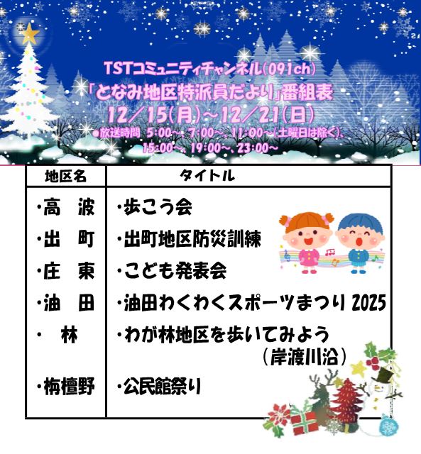 『となみ地区特派員だより』は、毎日放送(各30分・1地区5分)