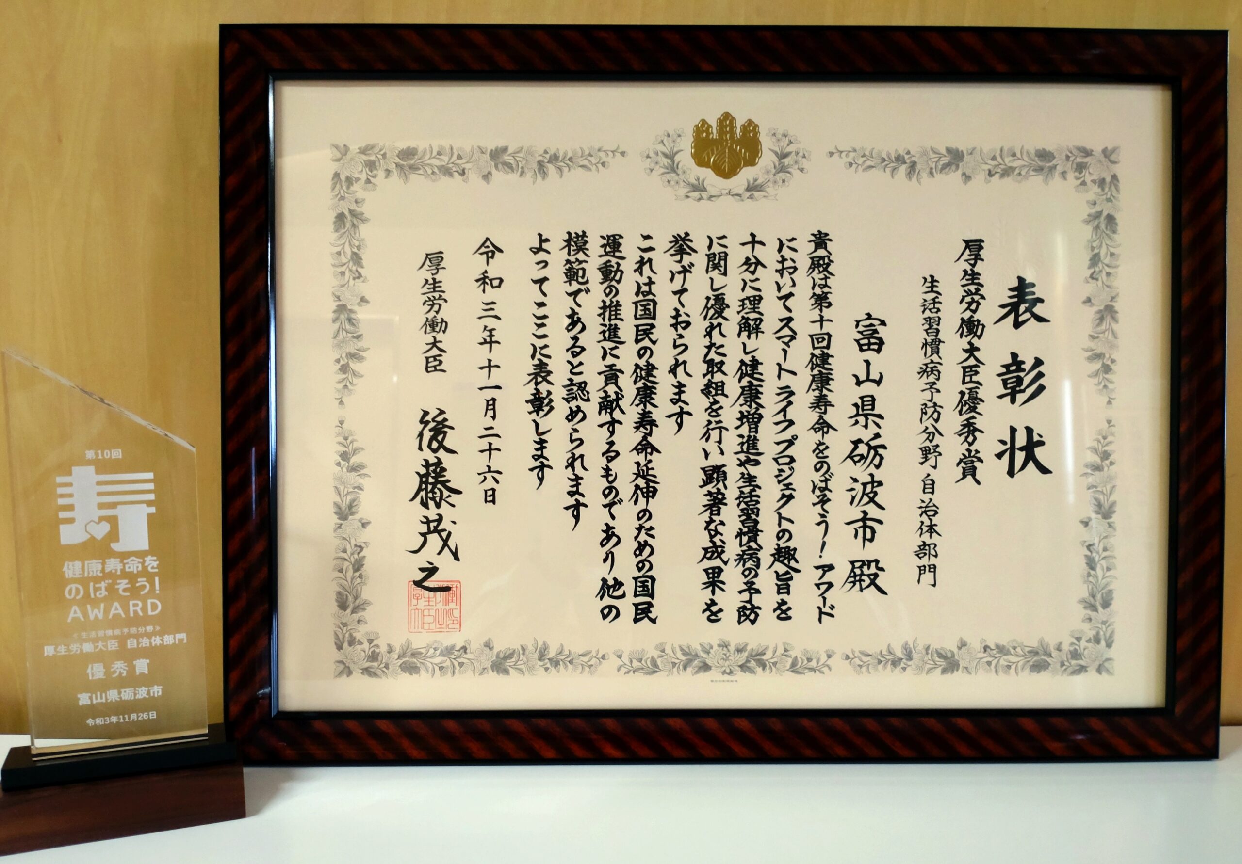 厚生労働省(スマート・ライフ・プロジェクト)、スポーツ庁主催の第10回「健康寿命をのばそう!アワード」に、砺波市が取り組んでいる「となベジプロジェクト」の活動内容を取組事例として応募し、下記のとおり受賞しました。