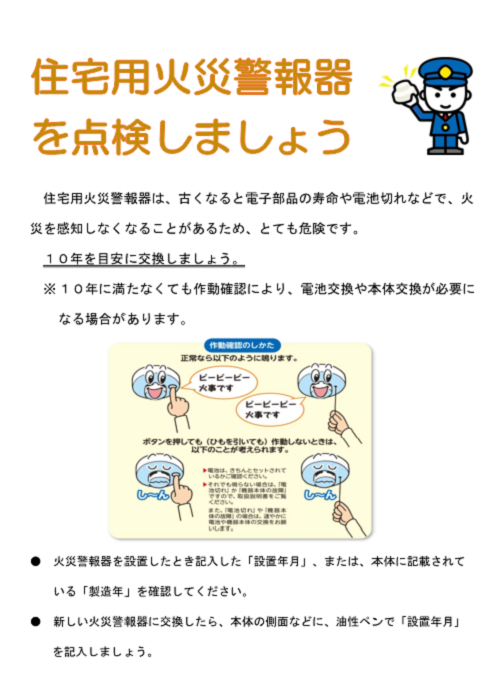 また、住宅用火災警報器をまだ設置されていないお宅につきましては、ご自身はもちろん、