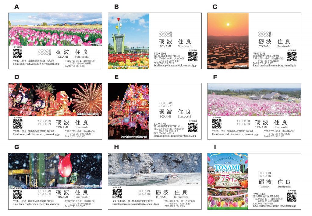 市の魅力発信を積極的に行っていただく目的で、この名刺デザインを市民の方、”となみファン”の皆さんにも広く公開しています。