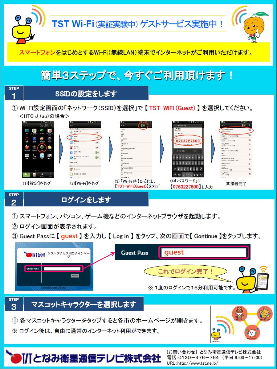 TOYAMA Free Wi-Fi is also available in 6 places (Tonami Tulip Park, Toyama Prefectural Western Sports Center, JR Oil Field Station, Shogawa Water Memorial Park, Shogawa Special Products Hall, Shokawa Ship) among Wi-Fi free spots anywhere in Tonami receive.