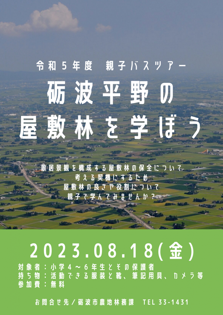 令和5年8月18日に、次世代の子どもたちに屋敷林の魅力を体感してもらう親子バスツアーを開催しました。