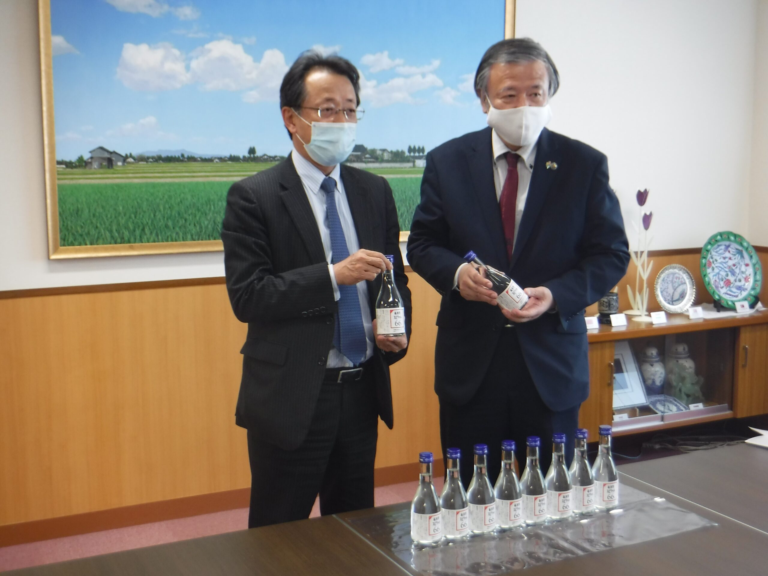 5月7日(木)に若鶴酒造株式会社から「砺波野スピリッツ66」を寄附いただきました。