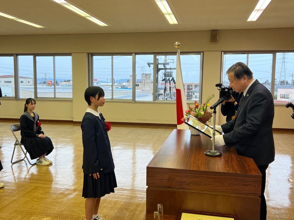 令和6年3月11日(月)砺波市役所大ホールにて「令和5年度砺波市功労者表彰式」が執り行われ、市政発展に寄与し、学術の向上、文化芸術・スポーツの振興、青少年の育成などに顕著な功績のあった教育文化功労者2人2団体を表彰しました。