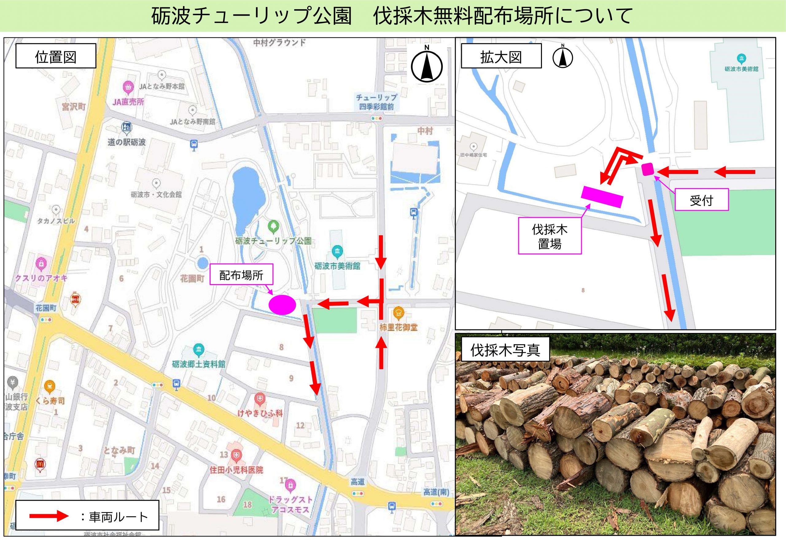 地図(砺波チューリップ公園(伐採木配布場所))