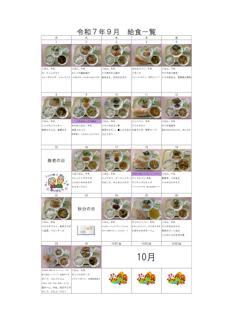 印刷する令和7年9月分の学校給食を写真と共に紹介します。