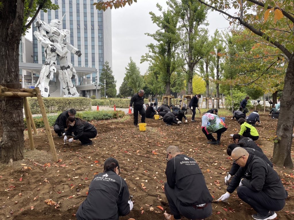 まちづくり協議会の会員と共に、来春の臨海副都心チューリップフェスティバルに向けたチューリップ球根の植え込みを行いました。