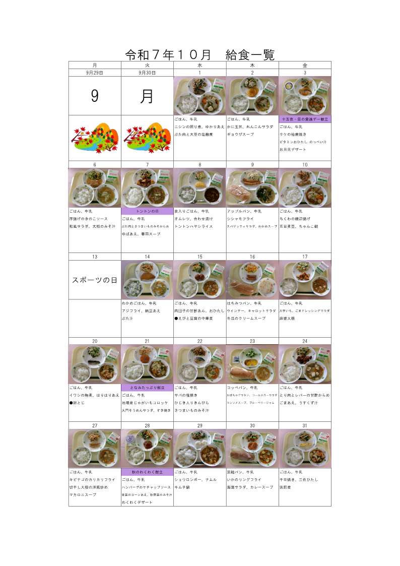 印刷する令和7年10月分の学校給食を写真と共に紹介します。
