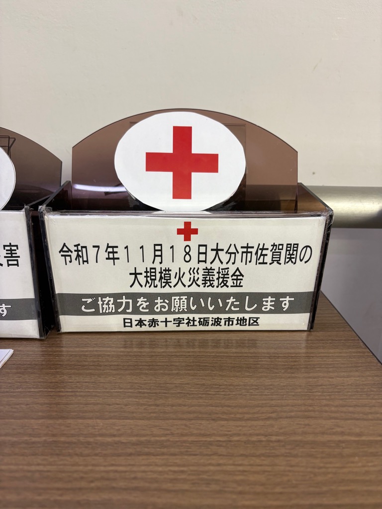 大分市佐賀関で発生した大規模火災により、被災された方々を支援するため、募金箱を設置しておりますので、ご案内いたします。