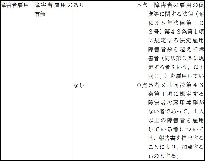 障害者雇用については、①法定雇用障害者数を超えて雇用している場合又は②雇用義務がないにもかかわらず障害者を雇用している場合に加点する改正をしています。