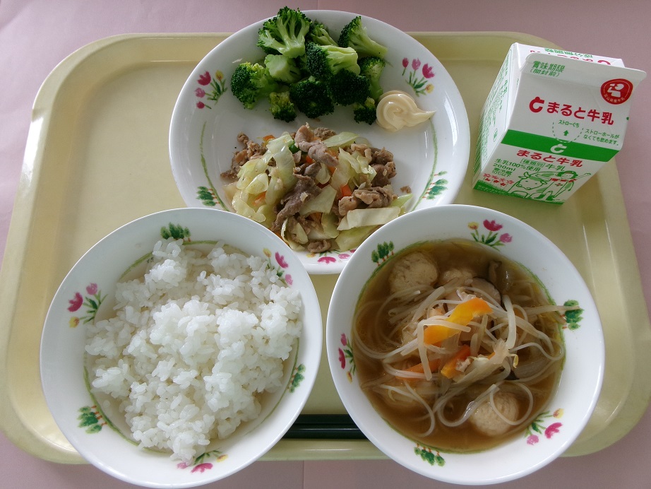 ごはん、牛乳、 スタミナいため、ゆでブロッコリー、ビーフンスープ