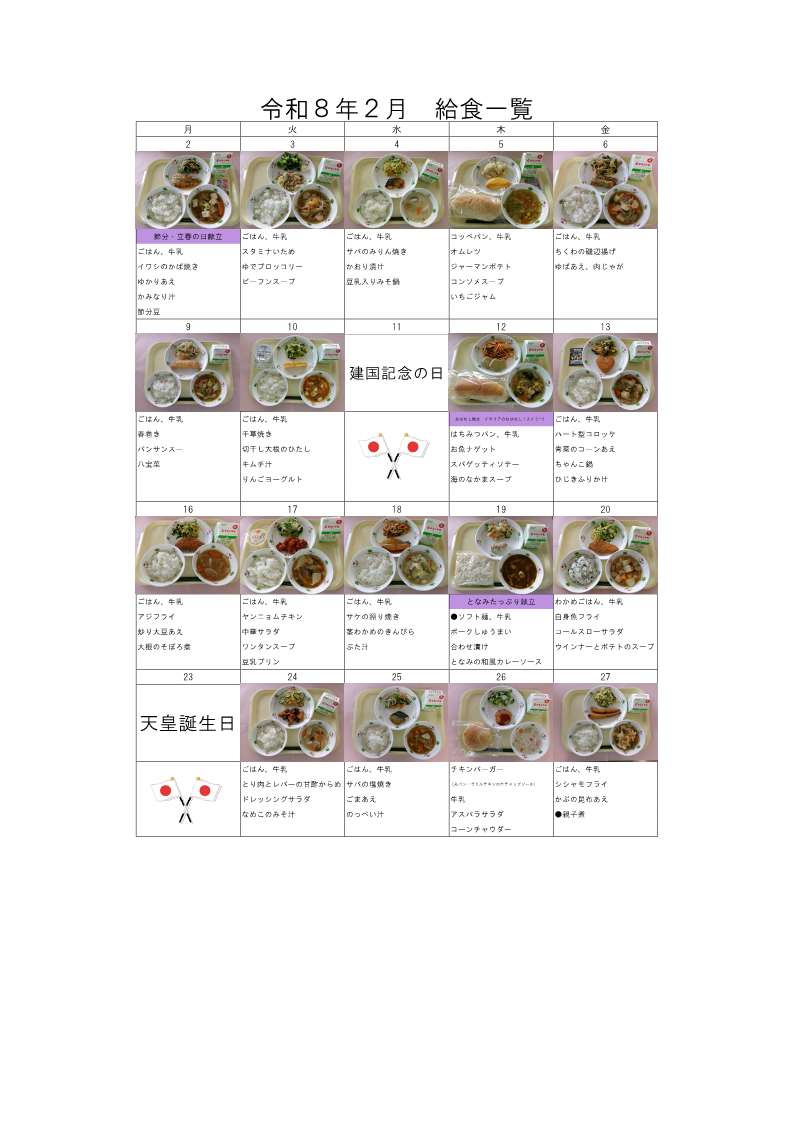 令和8年2月の学校給食一覧