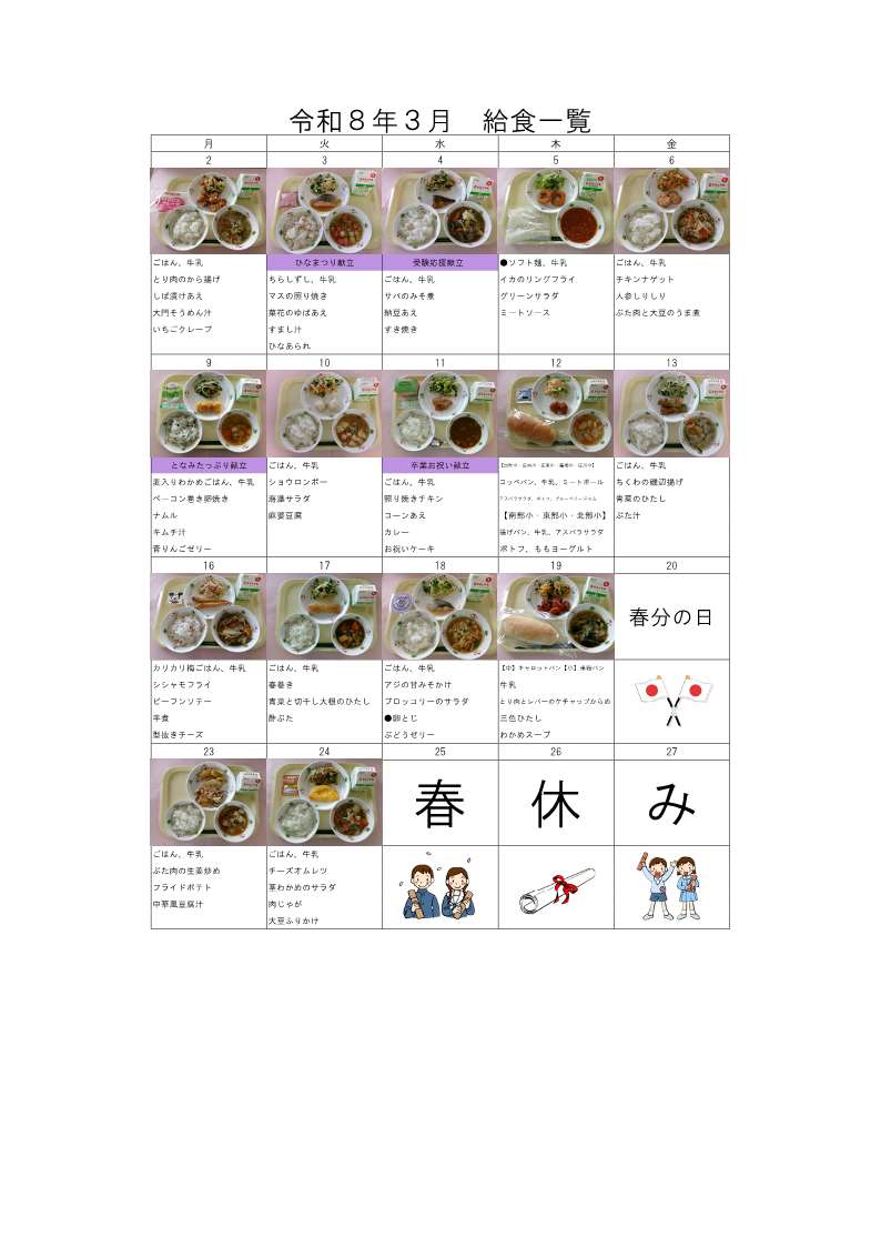 印刷する令和8年3月分の学校給食を写真と共に紹介します。